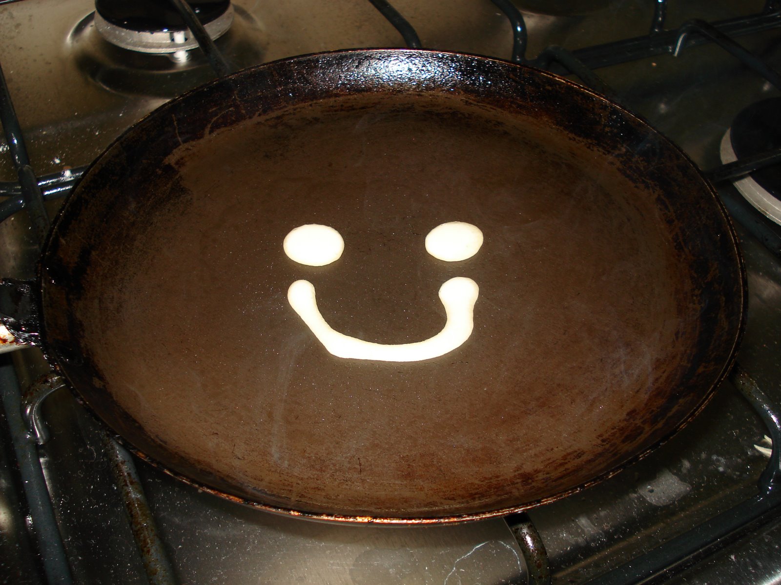Para personalizar: Coloque um pouco de massa dentro de uma bisnaga, e com a frigideira no fogo, faça o desenho e deixe que ele doure um pouco, depois acrescente a massa necessaria pra formar a panqueca do tamanho desejado.