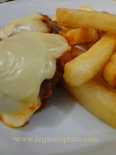 Para um almoço rápido eu sempre tenho um saquinho de medalhinhas de carne moída de boi ou frango no freezer e você pode fazer bifinhos simples, você pode assá-los por cima de uma cama de batatas ou então você pode empanar , fritar e cobrir com molhinho de tomate caprichado e um queijo derretendo – fica tipo vestido para festa e se tiver  criançada em casa , abaixe a guarda e sirva batatas fritas (porque de vez em quando pode amiga) rs.