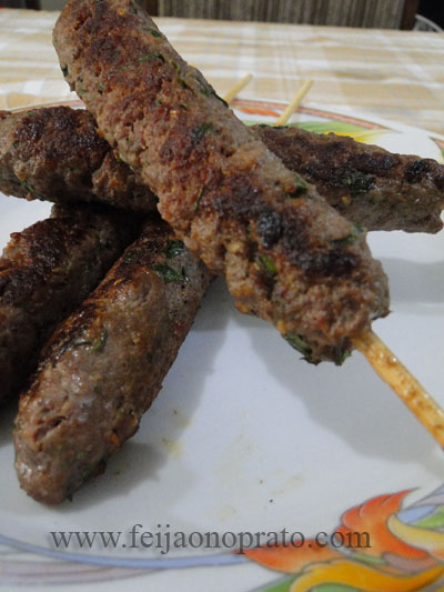 Sei que fazer receita do terreiro do vizinho é complicado pois pelo menos na minha casa sempre faço as adaptações ao paladar do eleitorado em questão e com isso a essência da receita acaba se perdendo um pouco então prefiro chamar a receita assim  “Kafta do jeito que eu gosto”, e vocês meu povo fazem adaptações nas receitinhas? Bom o que importa é que esses espetos são práticos e saborosos – pode servir com um arroz ou mesmo no recheio de pão sírio com uma salsa bem temperadinha.