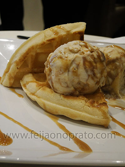 Outra sobremesa que me fez sonhar foi o waffle dream – um sorvete de banoffee com waffle e uma calda de caramelo um toquinho de creme chantilly pensa minha gente, é muito amor se materializando em forma de açúcar e gelo.