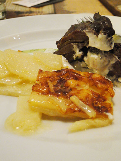 E por fim veio o cordeiro com toda sua categoria – assado com pasta refrescante de coalhada e esse lindo gratin de batatas para dar um sustância ao prato, (perfeito).