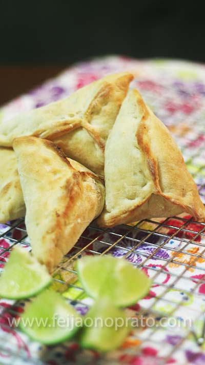 Agora, a massa: dilua bem o fermento no leite morno, misturando com um garfo. Junte o açúcar, o sal e o óleo. Coloque a farinha aos poucos e misture com uma colher de pau até obter uma massa homogênea. Cubra com um pano de prato e deixe descansar por cerca de 5 minutos. Depois, trabalhe a massa com as mãos por aproximadamente 5 minutos. Faça bolas de massa do tamanho de uma noz, cubra com um pano e deixe-as descansar por cerca de 5 minutos. Abra cada bola com os dedos, virando-as para formarem discos de espessura regular – use o rolo de massas, fica mais fácil. Em seguida, coloque no centro do disco ½ colher (sopa) de recheio*. Dobre a terça parte da beirada inferior até o centro e em seguida o terço esquerdo e o direito formando um triângulo, apertando ligeiramente as beiradas de uma contra a outra, para não abrirem. Coloque as esfihas em uma assadeira untada com óleo, deixando cerca de 2cm entre uma e outra. Leve ao forno por cerca de 30 minutos, ou até dourarem.